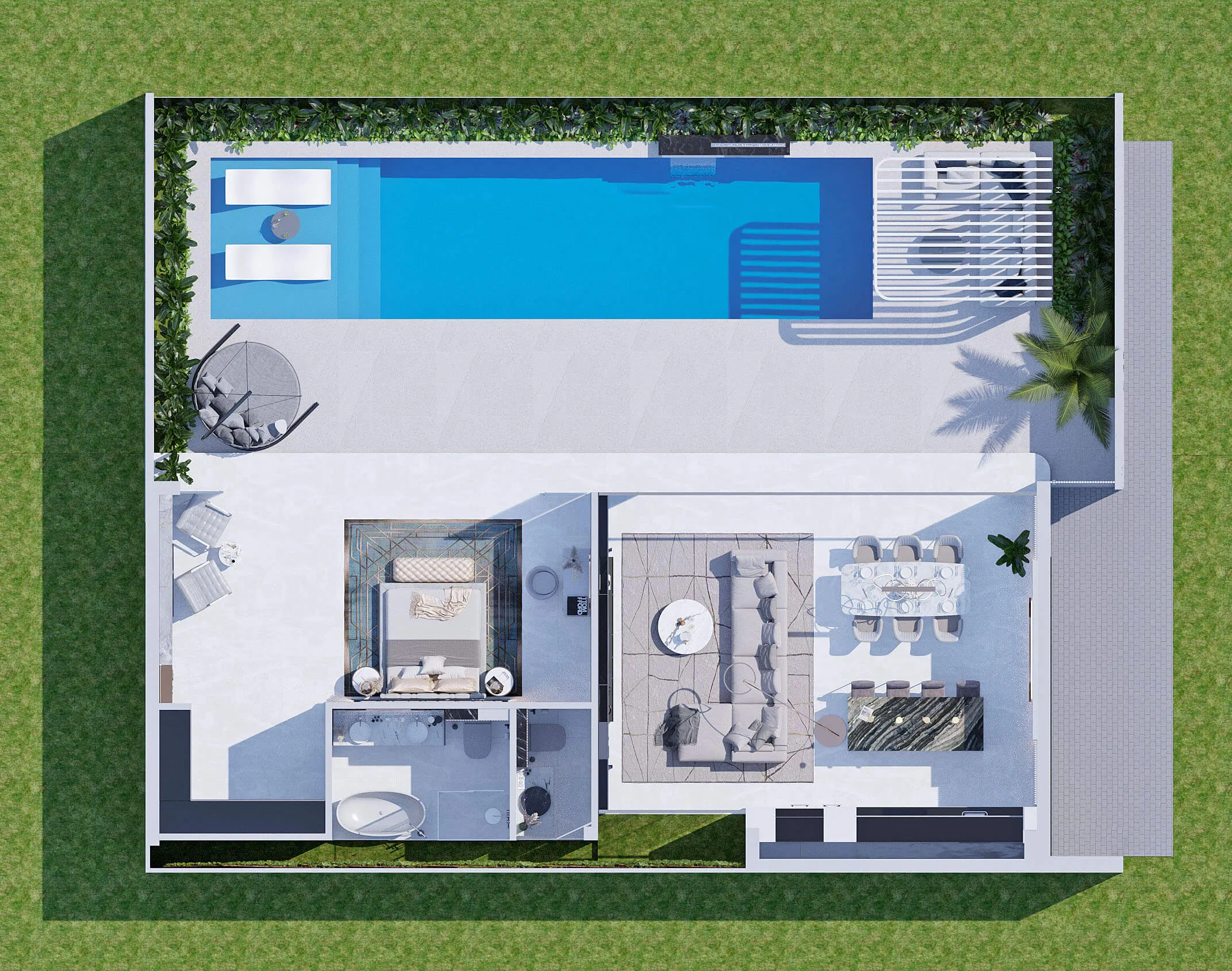 A prestigious complex of Californian-style luxury villas located in the south of Bali, boasting the highest quality of service and surrounded by world-class 5-star hotels, with top beach establishments just minutes away, ensuring unparalleled access to Bali's pristine coastline